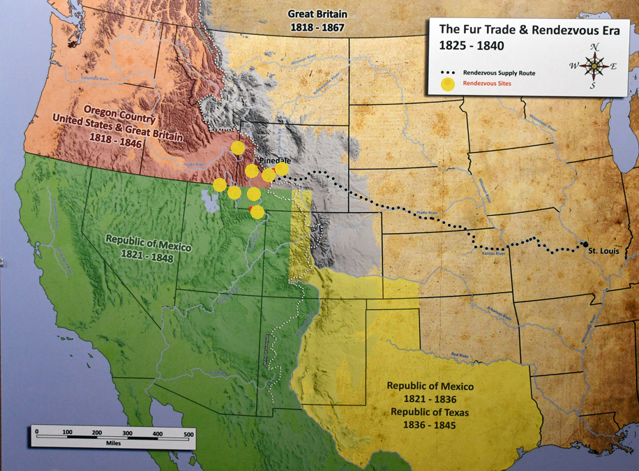 This journey from Bear Lake to Flaming Gorge to the Tetons crossed many of the Mountain Men “rendezvous” points along rivers where they caught Beaver along what was later the Oregon Trail. The yellow dots represent these late summer rendezvous points and are roughly the area covered in these posts (Bear Lake, Flaming Gorge, Tetons)